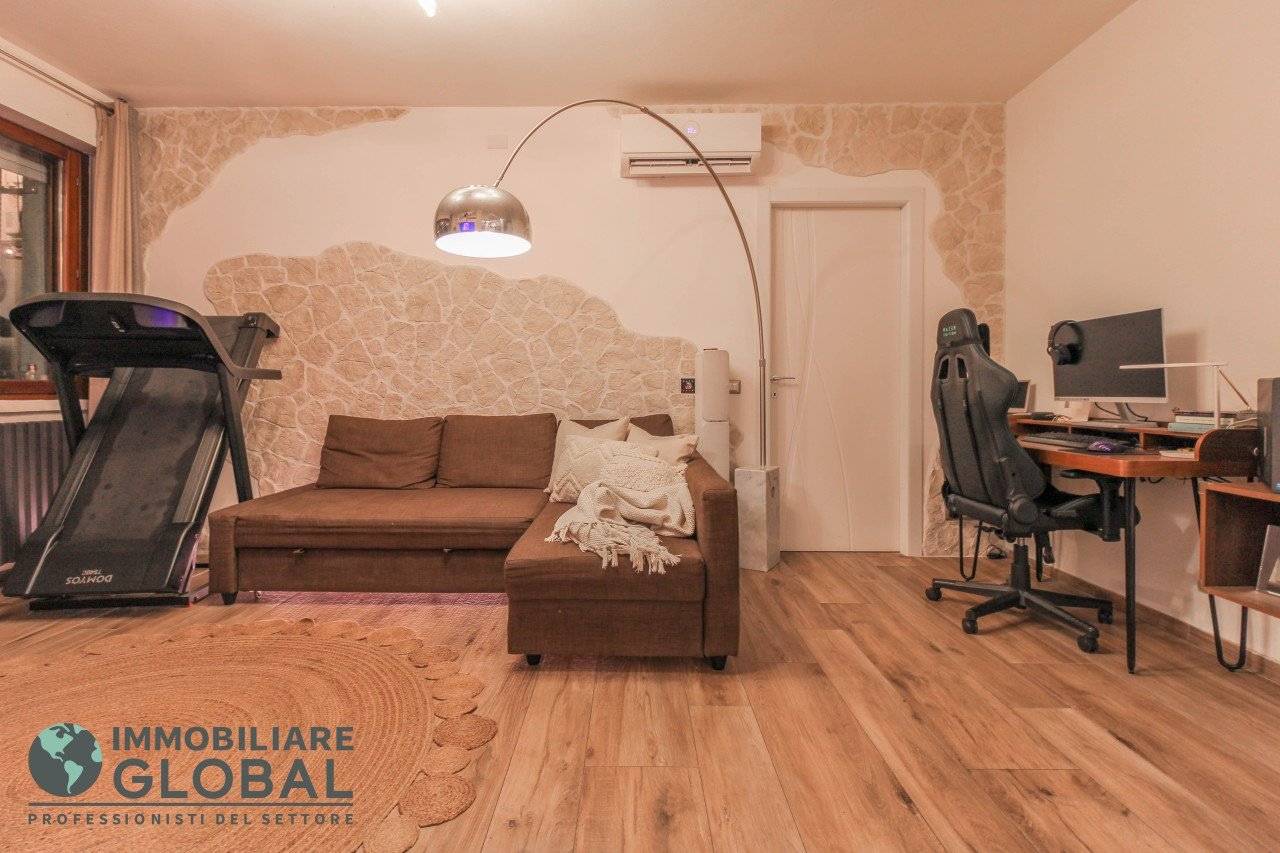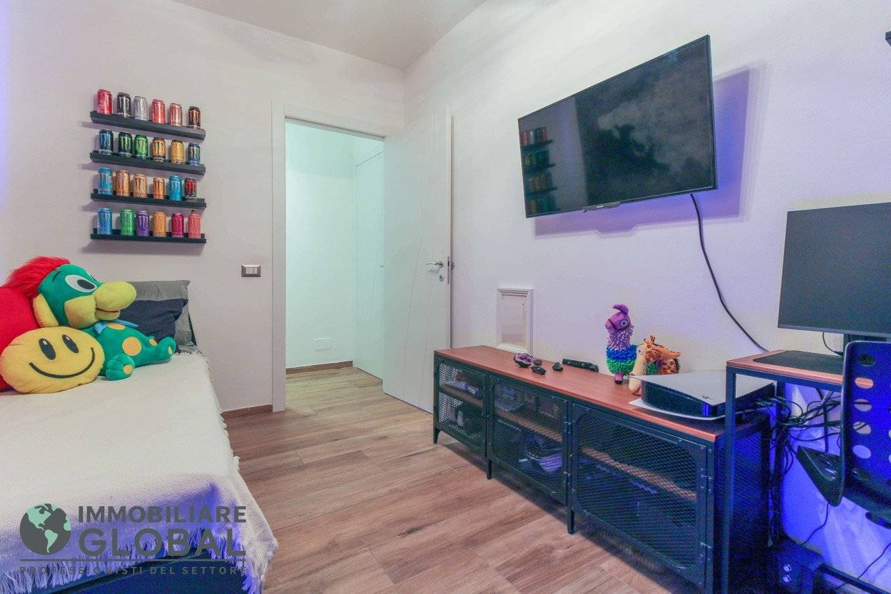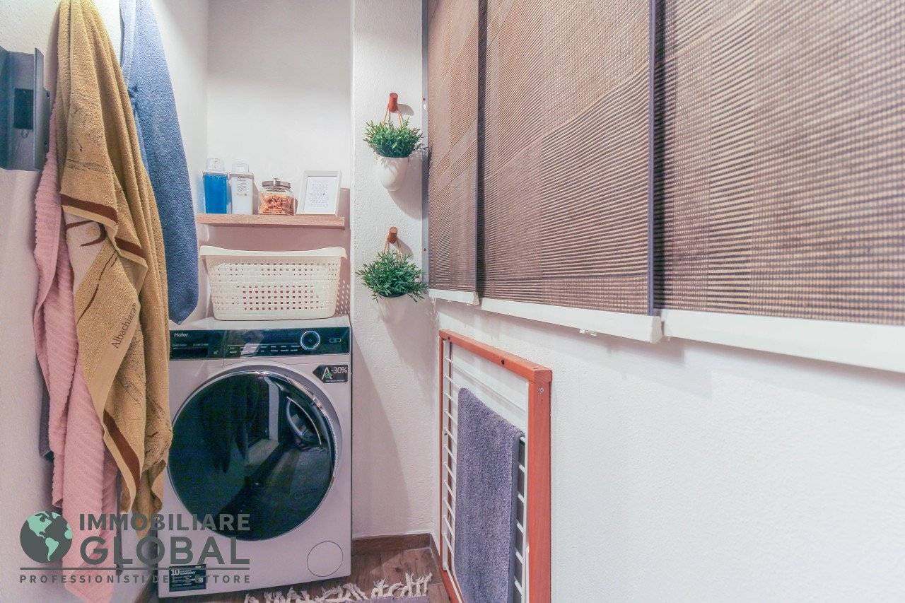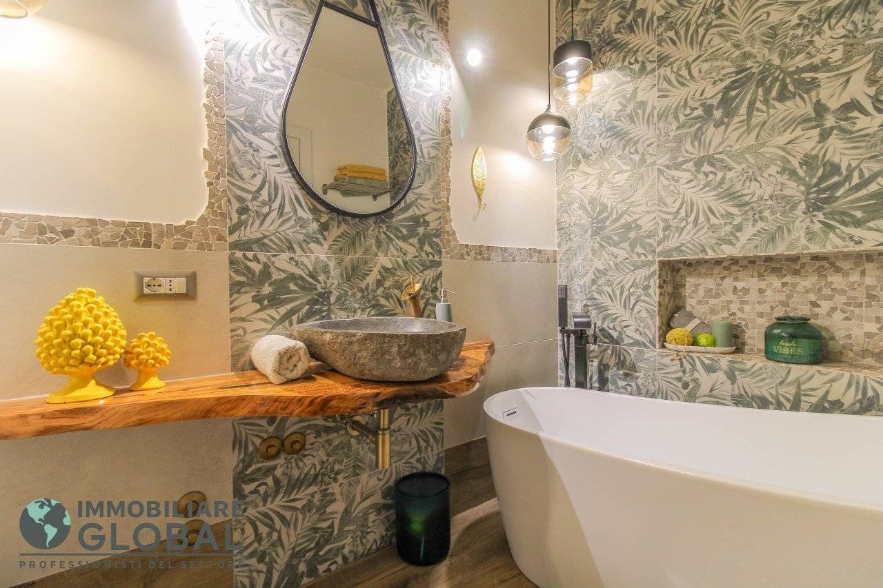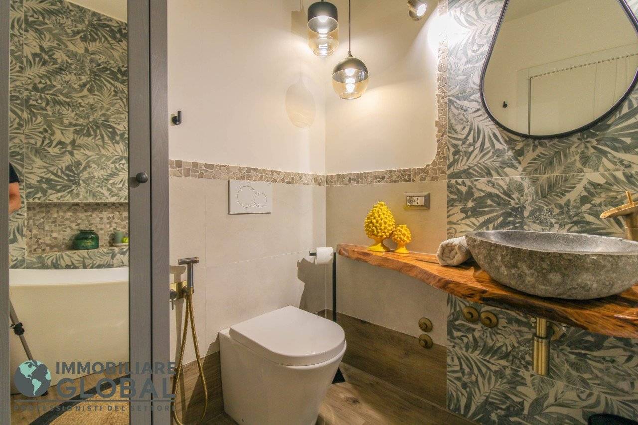 L'intervento di ristrutturazione del 2019 ha trasformato completamente l'immobile, rendendolo contemporaneo e raffinato. La nuova pavimentazione in gres porcellanato rettificato effetto legno attraversa l'intera abitazione, creando continuità visiva e calore in ogni ambiente. L'impianto elettrico e idraulico è stato completamente rifatto, così come i due bagni, uno con vasca e uno con doccia, progettati con finiture ricercate che trasmettono una sensazione di benessere e relax. Le porte interne di design e il sistema di climatizzazione canalizzato completano un quadro abitativo di alto livello.
