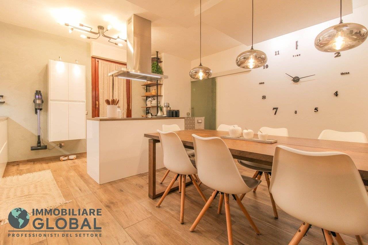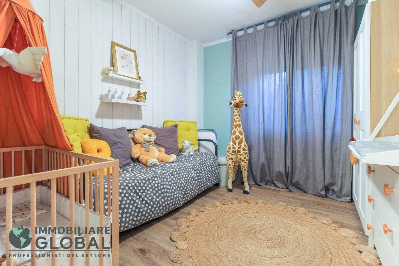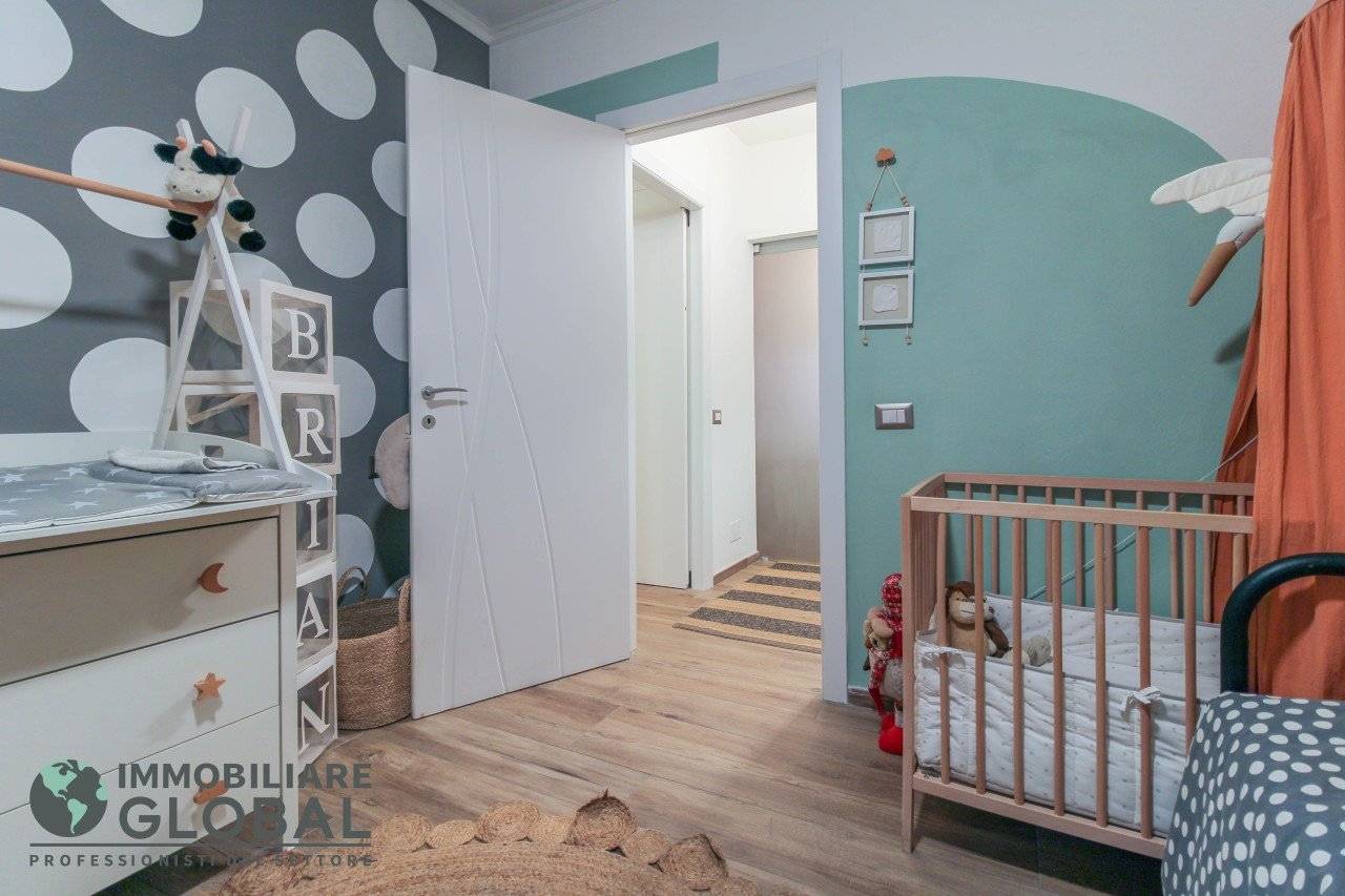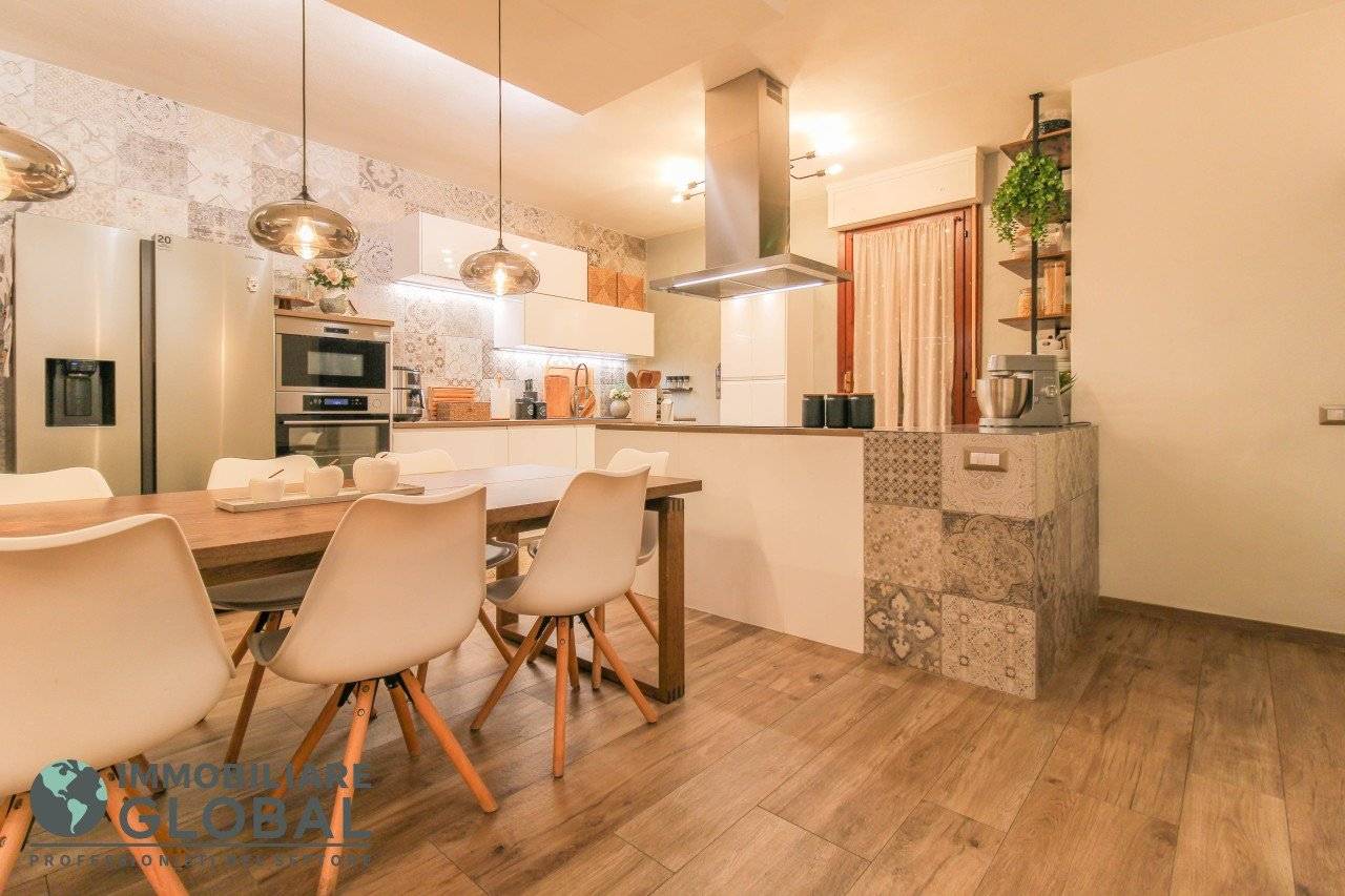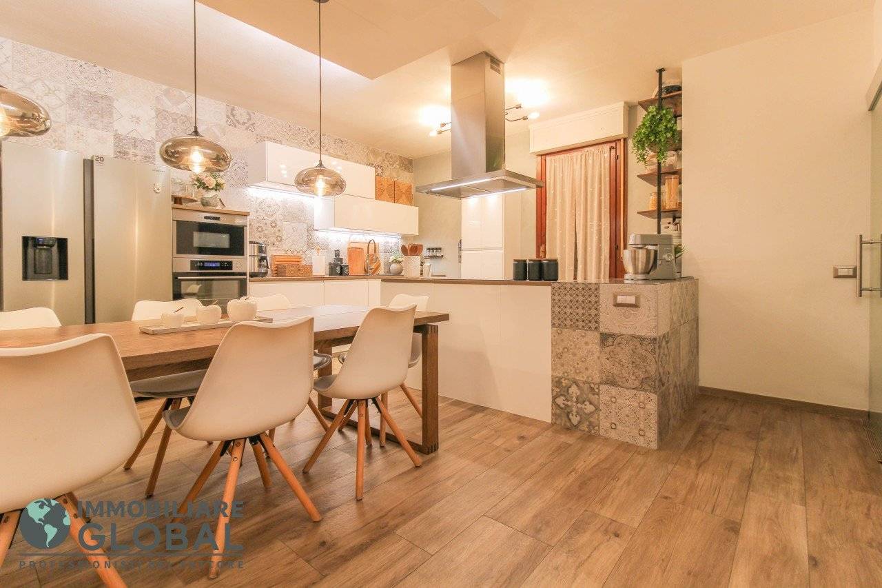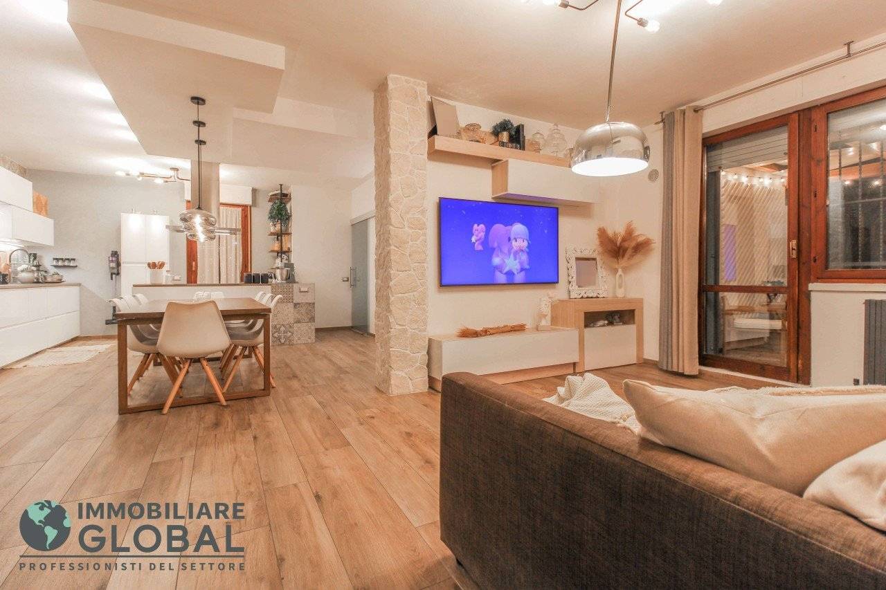 L'intervento di ristrutturazione del 2019 ha trasformato completamente l'immobile, rendendolo contemporaneo e raffinato. La nuova pavimentazione in gres porcellanato rettificato effetto legno attraversa l'intera abitazione, creando continuità visiva e calore in ogni ambiente. L'impianto elettrico e idraulico è stato completamente rifatto, così come i due bagni, uno con vasca e uno con doccia, progettati con finiture ricercate che trasmettono una sensazione di benessere e relax. Le porte interne di design e il sistema di climatizzazione canalizzato completano un quadro abitativo di alto livello.