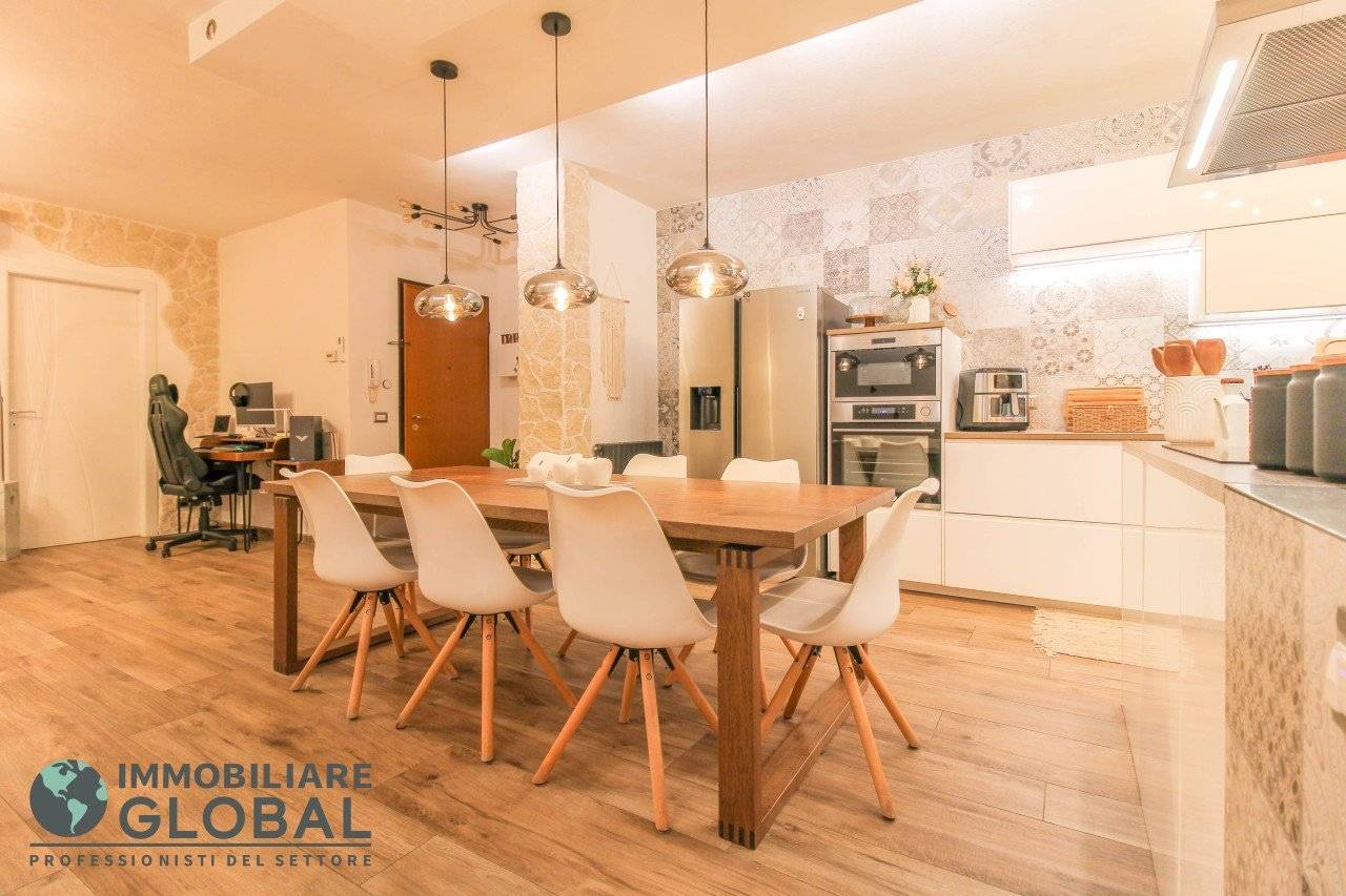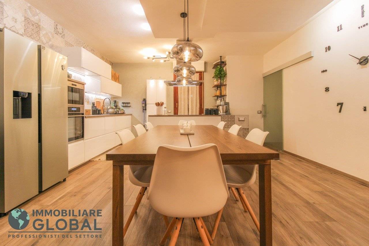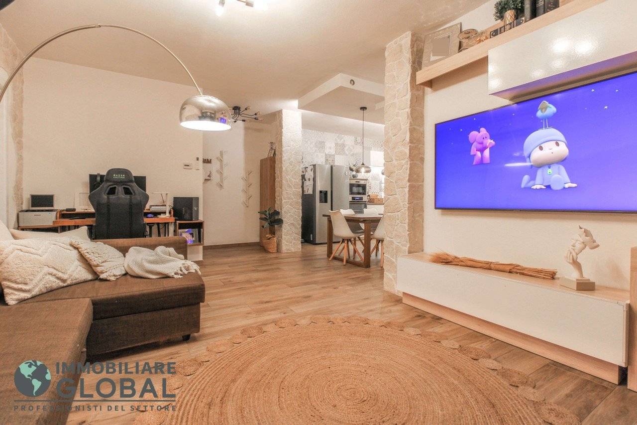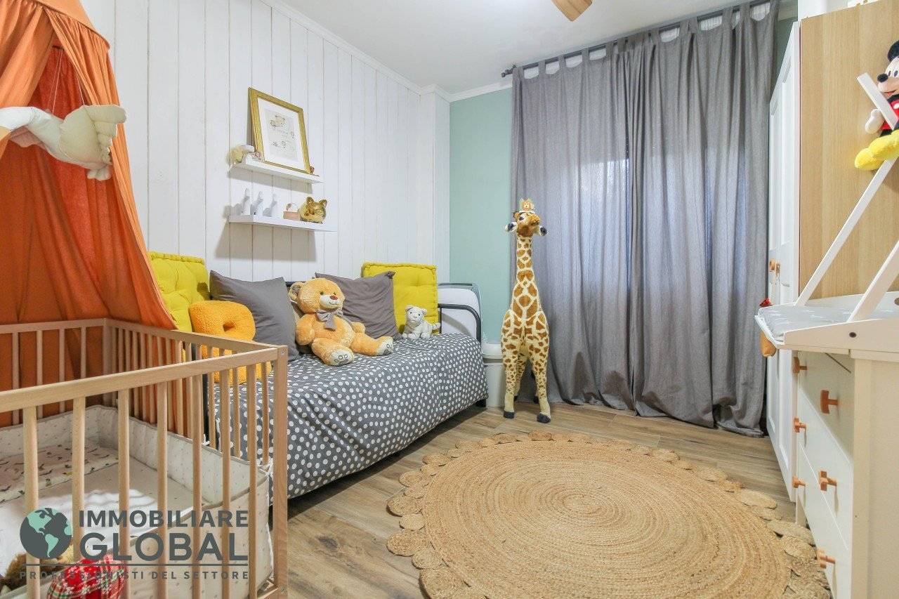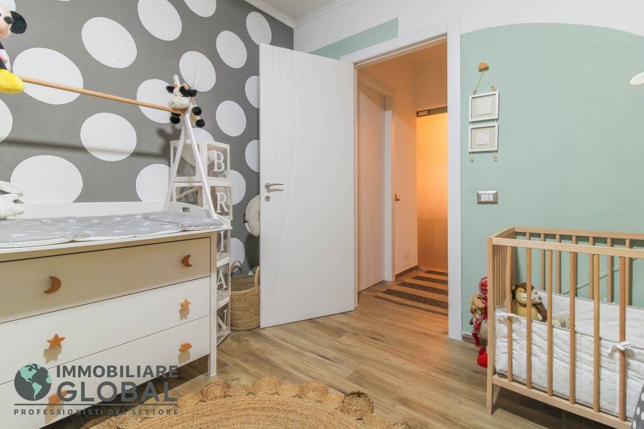 L'intervento di ristrutturazione del 2019 ha trasformato completamente l'immobile, rendendolo contemporaneo e raffinato. La nuova pavimentazione in gres porcellanato rettificato effetto legno attraversa l'intera abitazione, creando continuità visiva e calore in ogni ambiente. L'impianto elettrico e idraulico è stato completamente rifatto, così come i due bagni, uno con vasca e uno con doccia, progettati con finiture ricercate che trasmettono una sensazione di benessere e relax. Le porte interne di design e il sistema di climatizzazione canalizzato completano un quadro abitativo di alto livello.