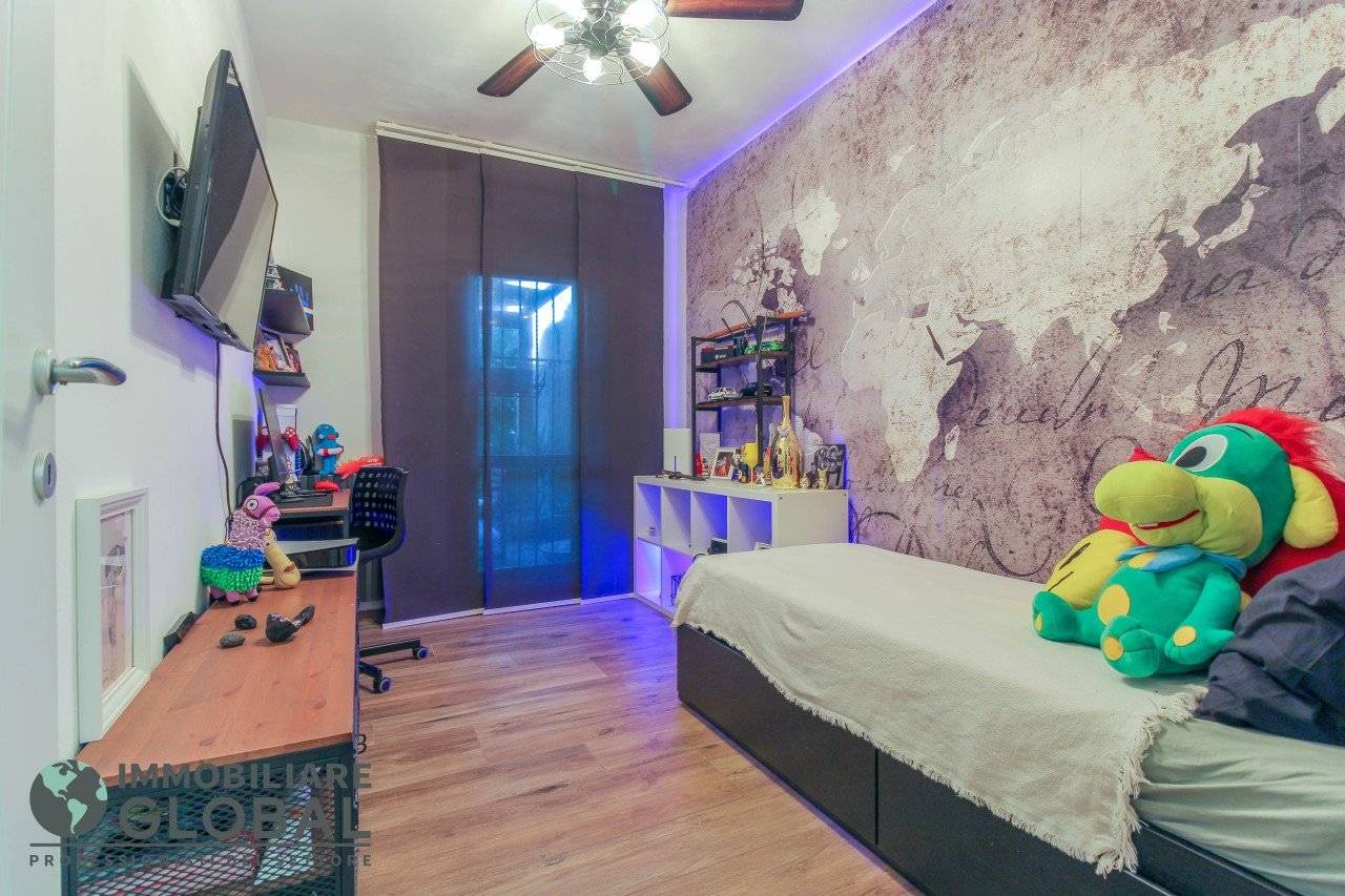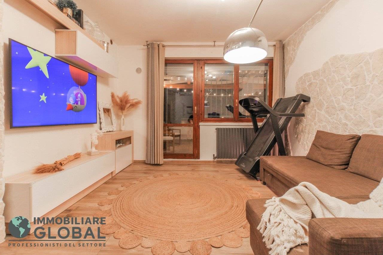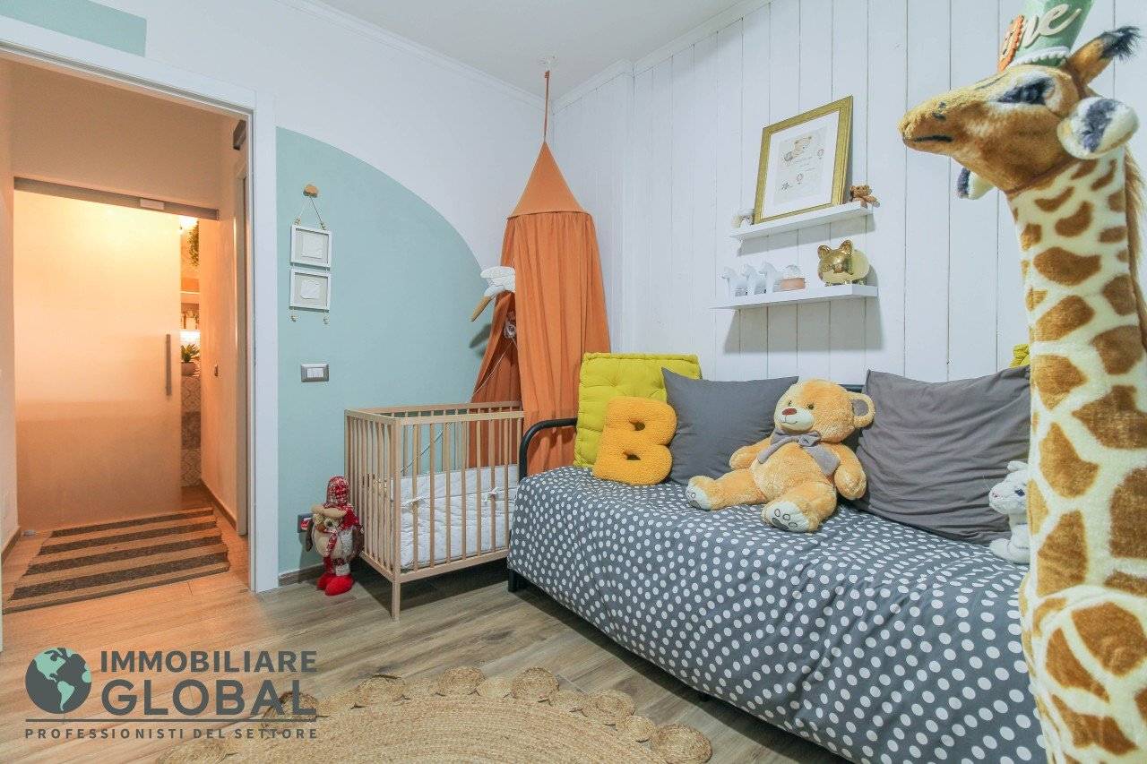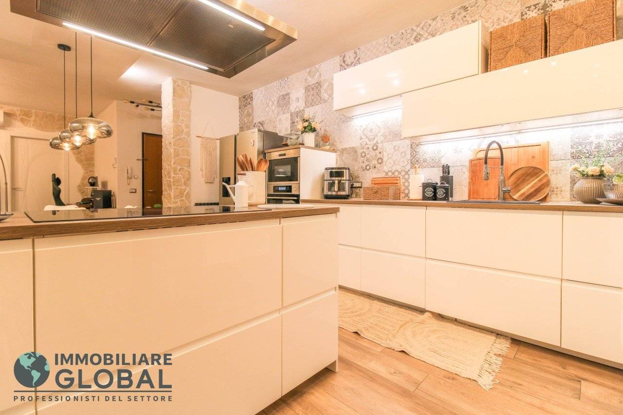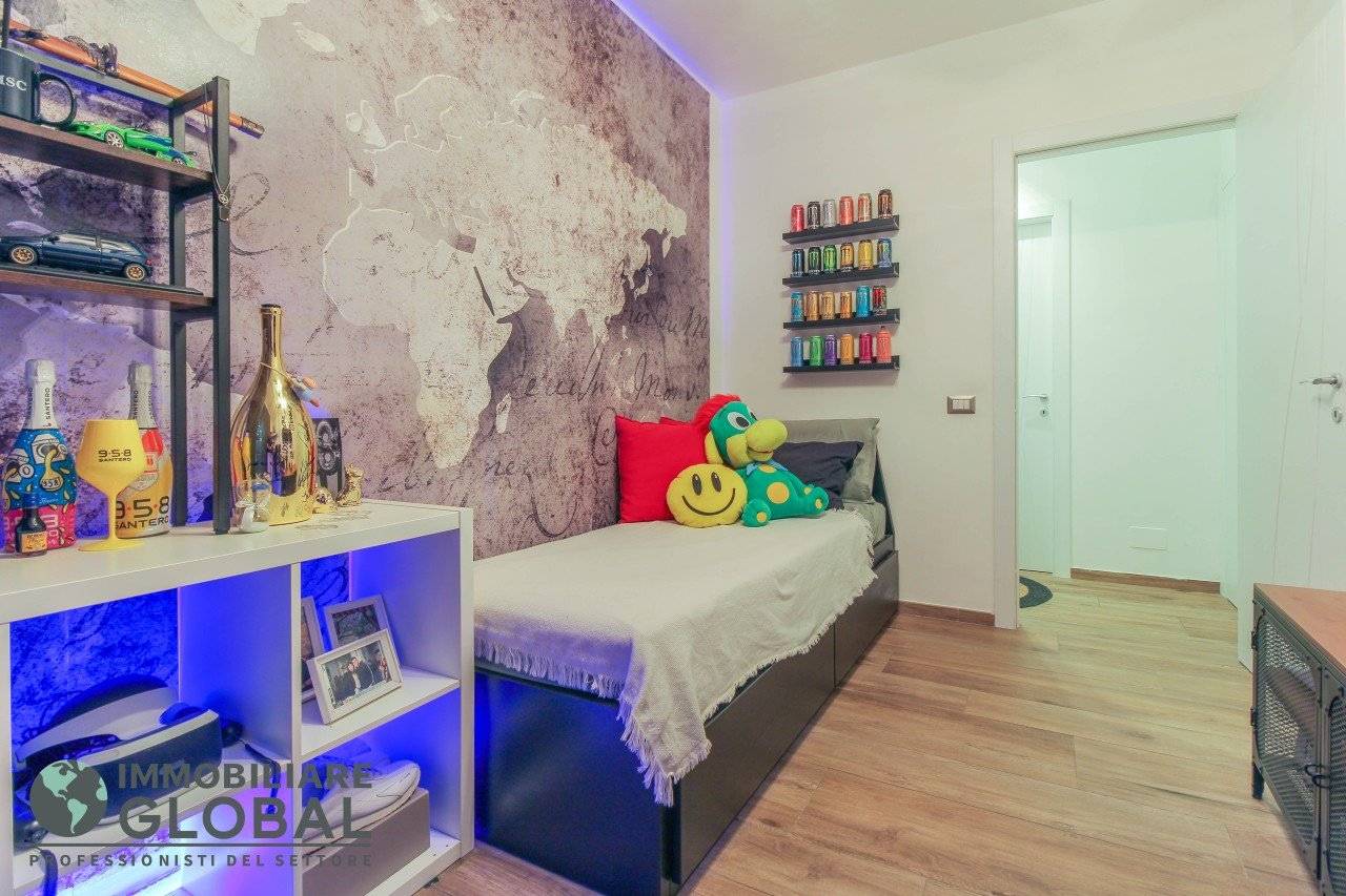 L'intervento di ristrutturazione del 2019 ha trasformato completamente l'immobile, rendendolo contemporaneo e raffinato. La nuova pavimentazione in gres porcellanato rettificato effetto legno attraversa l'intera abitazione, creando continuità visiva e calore in ogni ambiente. L'impianto elettrico e idraulico è stato completamente rifatto, così come i due bagni, uno con vasca e uno con doccia, progettati con finiture ricercate che trasmettono una sensazione di benessere e relax. Le porte interne di design e il sistema di climatizzazione canalizzato completano un quadro abitativo di alto livello.