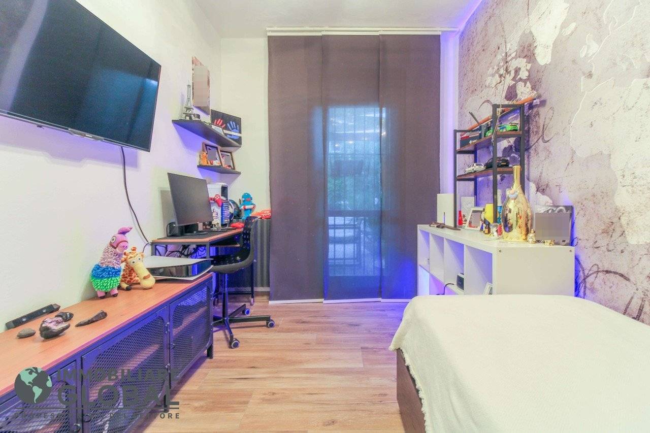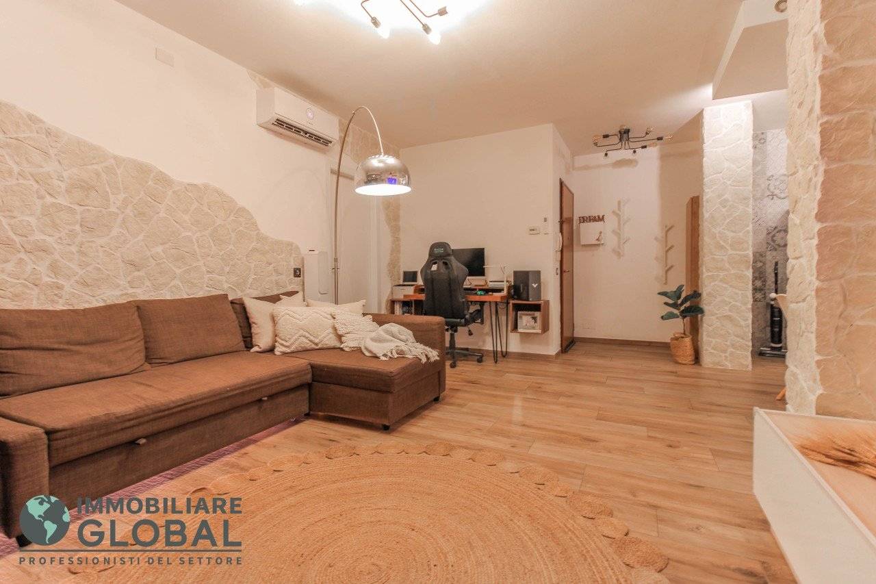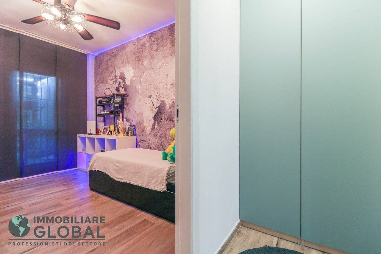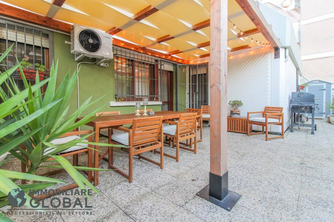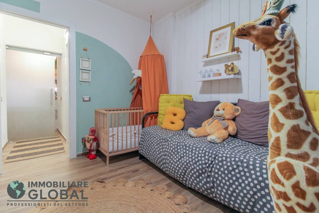 L'intervento di ristrutturazione del 2019 ha trasformato completamente l'immobile, rendendolo contemporaneo e raffinato. La nuova pavimentazione in gres porcellanato rettificato effetto legno attraversa l'intera abitazione, creando continuità visiva e calore in ogni ambiente. L'impianto elettrico e idraulico è stato completamente rifatto, così come i due bagni, uno con vasca e uno con doccia, progettati con finiture ricercate che trasmettono una sensazione di benessere e relax. Le porte interne di design e il sistema di climatizzazione canalizzato completano un quadro abitativo di alto livello.